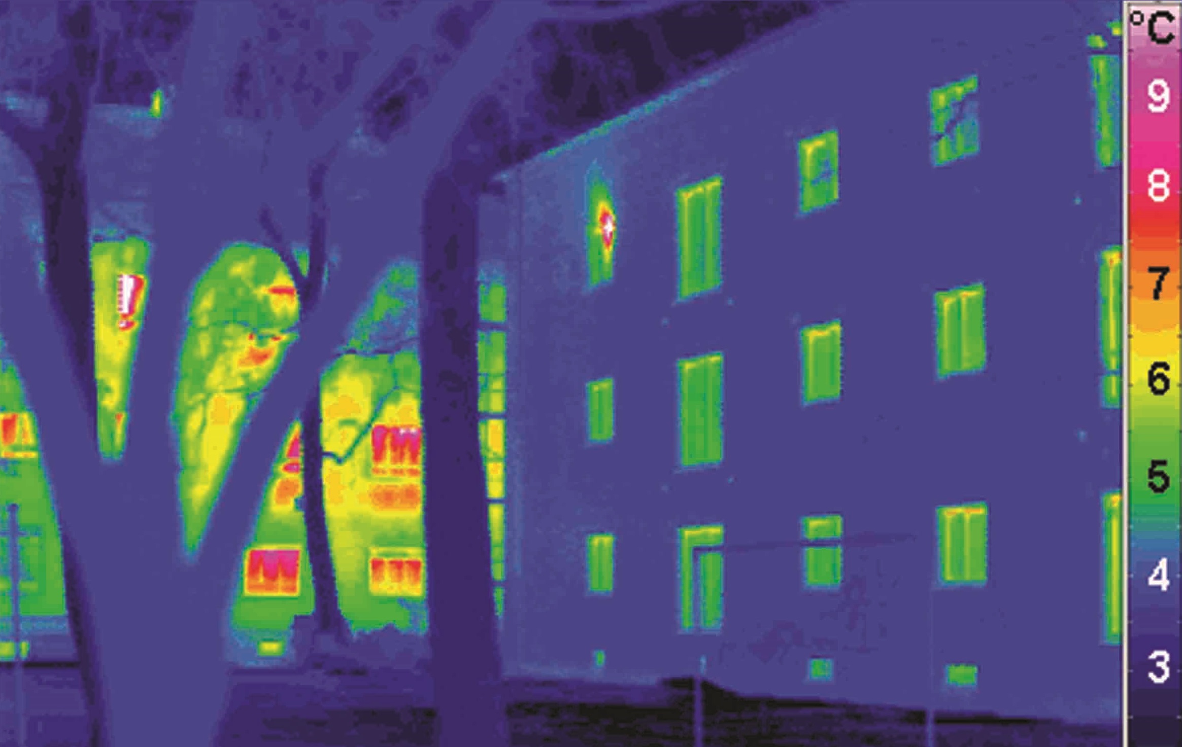 Toplotni gubitci - infracrvena termografija U sklopu energetskog pregleda u mogućnosti smo uraditi termografski pregled zgrade. Termografija je beskontaktna metoda merenja i beleženja toplotnog zračenja i njegove raspodele na površinama zgrade. Rezultat merenja vidljiv je u termogramu - trajnom zapisu o izmerenim veličinama. Sam postupak termografskog pregleda podrazumeva snimanje IC kamerom, softversku obradu snimaka (termograma) na osnovu kojih detektujemo toplotne gubitke: