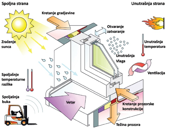 Priključak prozorskog rama i zida-gradjevine, tj. prostor-fuga koji se pritom formira, često se zanemaruje prilikom gradnje. Upravo taj prostor-fuga, uz nepostojeće ili loše zaptivanje, može uvećati za 50% troškova grejanja, odnosno umanjiti Uw-ukupni koeficijent prolaza toplote ugradjenog prozora. Prema zakonima gradjevinske fizike, vodena para teži izjednačenju od visokog ka nižem nivou po pravilu iznutra prema spolja. Iz tog razloga, paronepropusnost zaptivnog sloja-fuge prozorskog rama i zida-gradjevine treba biti veća na unutarnjoj strani prostorije nego na spoljašnoj strani. Zaključak: Najkvalitetniji prozor ima toplotne gubitke ukoliko nije dobro zaptiven tj. ako je nepravilno ugradjen. |