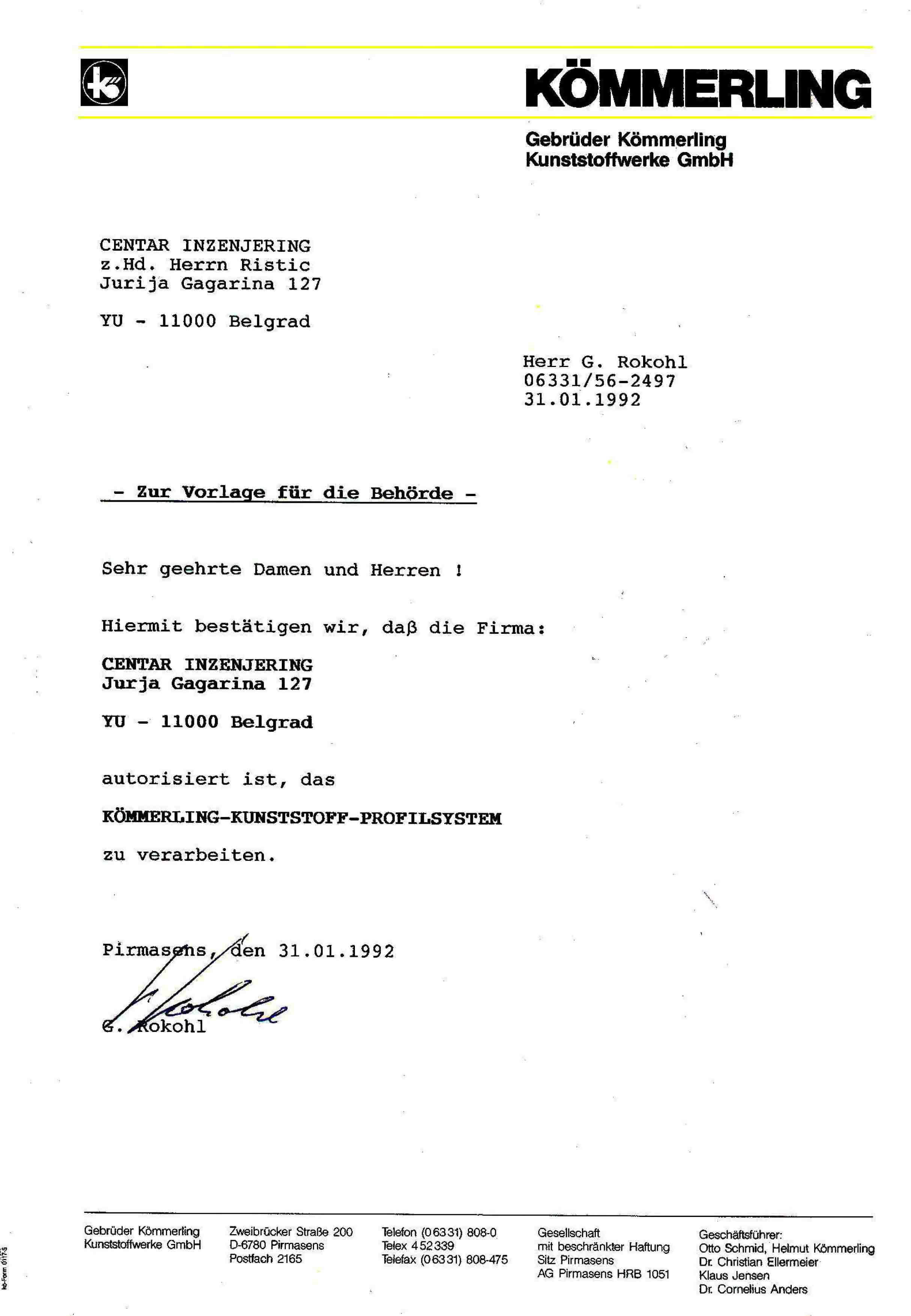 Centarinzenjering proizvodnja PVC stolarije 1992 godine