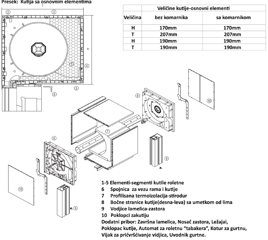Pribor za roletne: Pokretanje zastora-lamelica može se obaviti mehaničkim i elektro pogonom. Male i srednje površine (do 2qm) zastora-lamelica pokreće mehanički pogon preko automata za roletne "tabakere" ili polužnog mehanizma (kurble). Lako i bez mnogo napora veće površine (od 2qm) zastora-lamelica pokreću se elektromotorom sa komandom preko zidnog prekidača, daljinskog prekidača ili automatskim tajmerom. |
